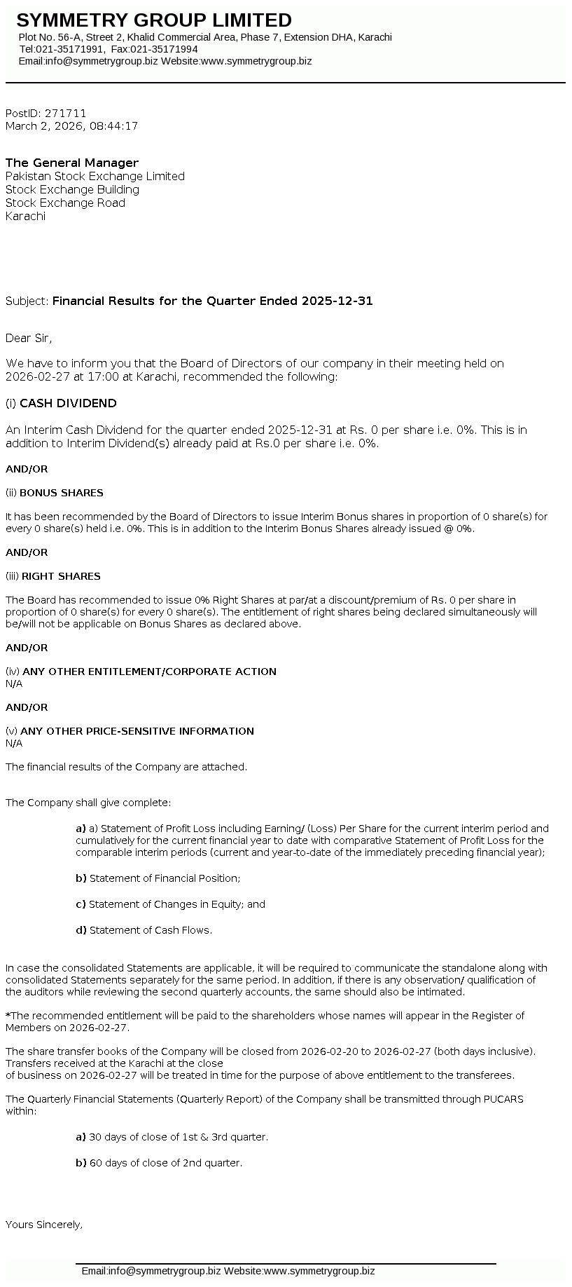 Latest Dividend